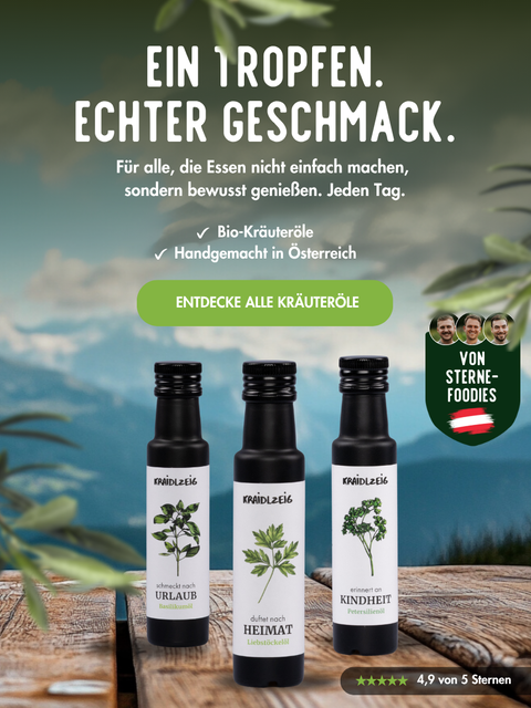 Für optimale Frische empfehlen wir, deine Kraidlzeig Kräuteröle an einem kühlen, dunklen Ort zu lagern. Vermeide direktes Sonnenlicht und starke Wärmequellen, um die Qualität und Haltbarkeit des Öls zu bewahren.
